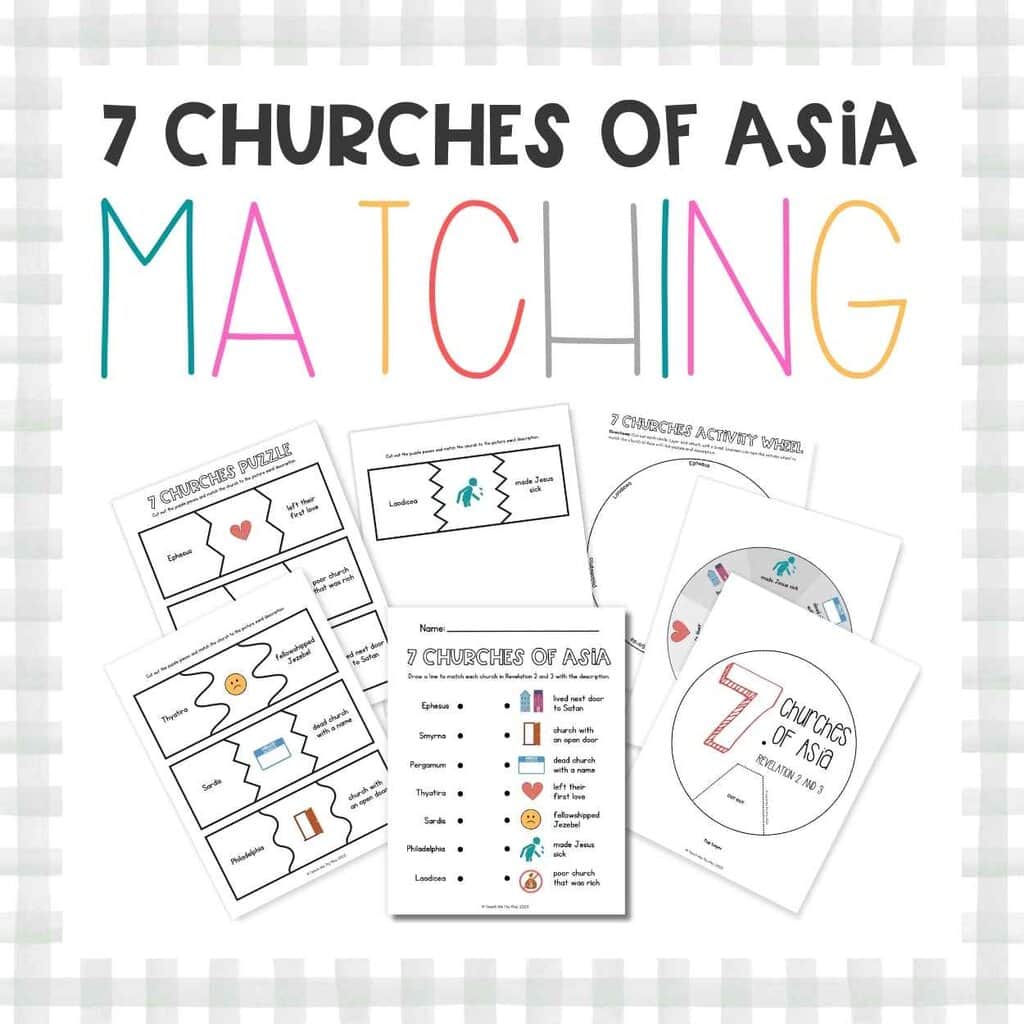 The 7 Churches of Asia Matching Activities are a wonderful addition to Bible lessons covering the beginning of the book of Revelation. The book of Revelation opens with a vision of Christ (1:9-20) and short letters to the seven churches of Asia (2:1-3:22).